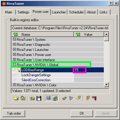 3.2. Expand the “RivaTuner NVIDIA Global” menu. Enter a value in “LODBiasRange” of 15.