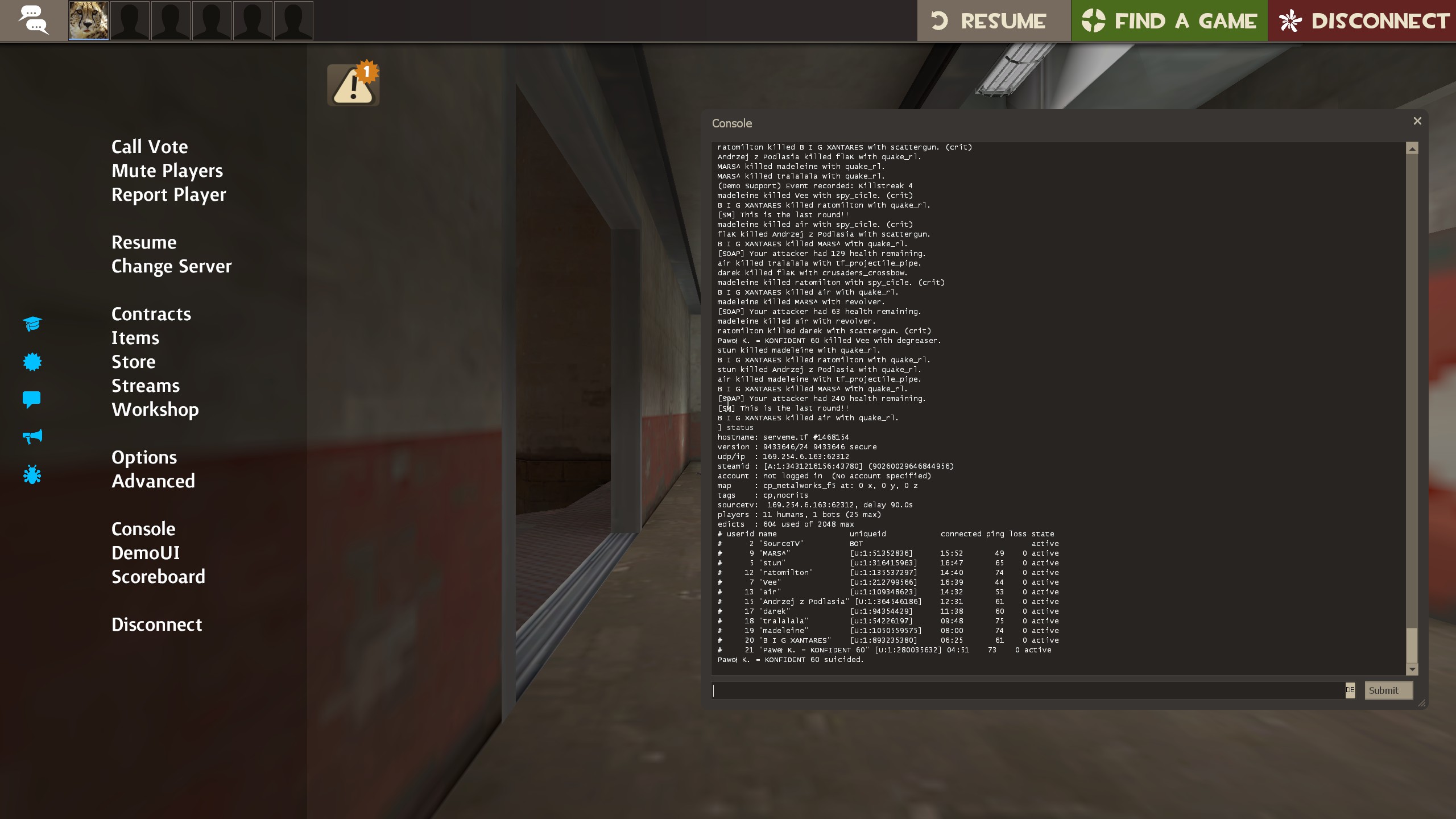 Therefore a minor warning has been issued to both teams. Once you have uploaded the screenshots contact an admin in our discord https://discord.etf2l.org to get the warning removed.