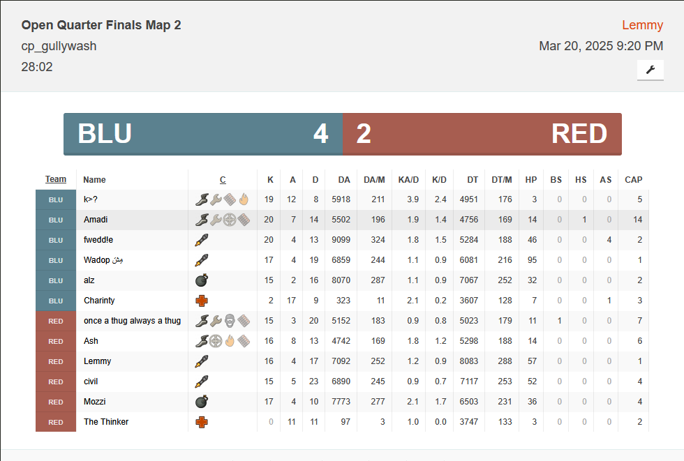 Welcome to the 6v6 Winter 2025 Open Quarter Finals!