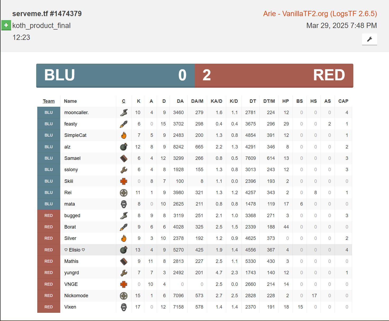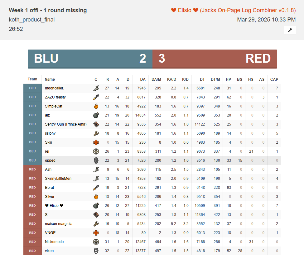 This player played in 15 matches. Played classes: Scout, Soldier, Sniper. Part of the following teams: RonniePickeringsBadBitches [Highlander].