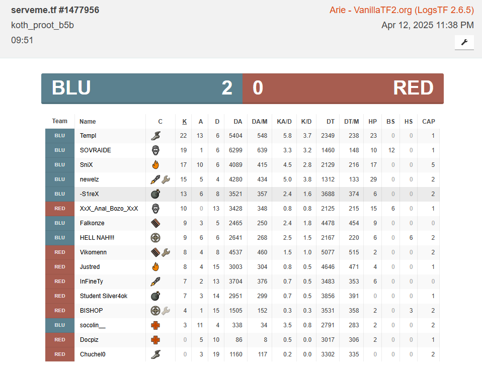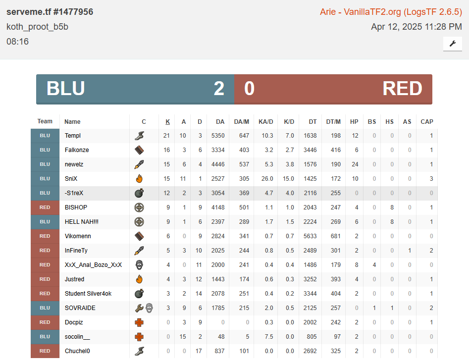 | Ruiners of TF2 | (5) Aven, InFineTy, olo4eka silver4ok, Docpiz, Chuchel0 |