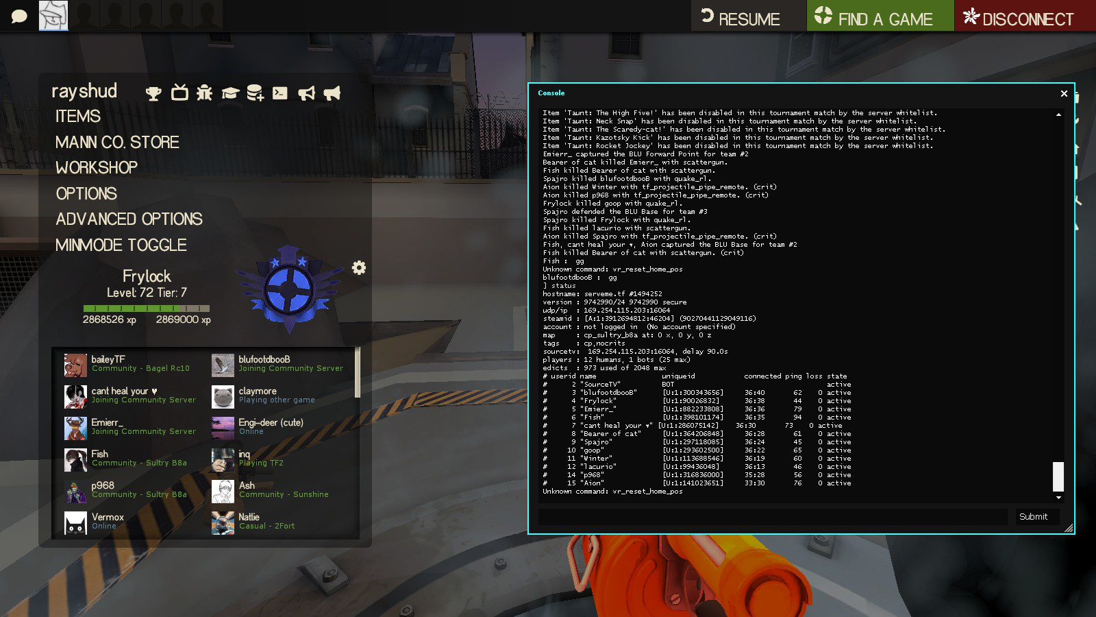 Therefore a minor warning has been issued to both teams. Once you have uploaded the screenshots contact an admin in our discord https://discord.etf2l.org to get the warning removed.