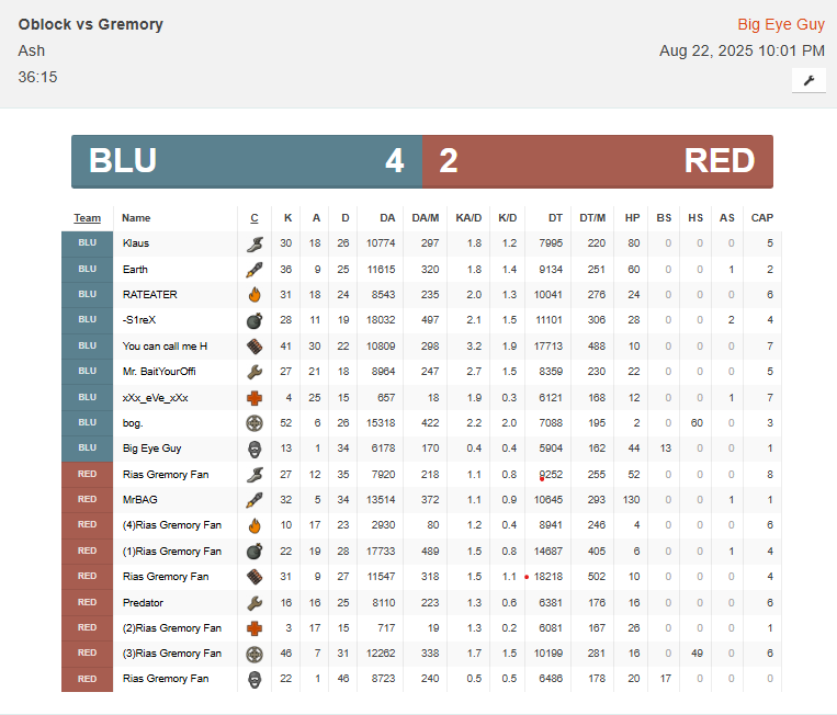 Therefore a minor warning has been issued to both teams. Once you have uploaded the screenshots contact an admin in our discord https://discord.etf2l.org to get the warning removed.
