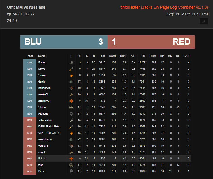 | Oom | (8) ch3t, manuhamu, znach, stillaezakmi, ligtaz, zlot, yoghard, VIP TERMINATOR |