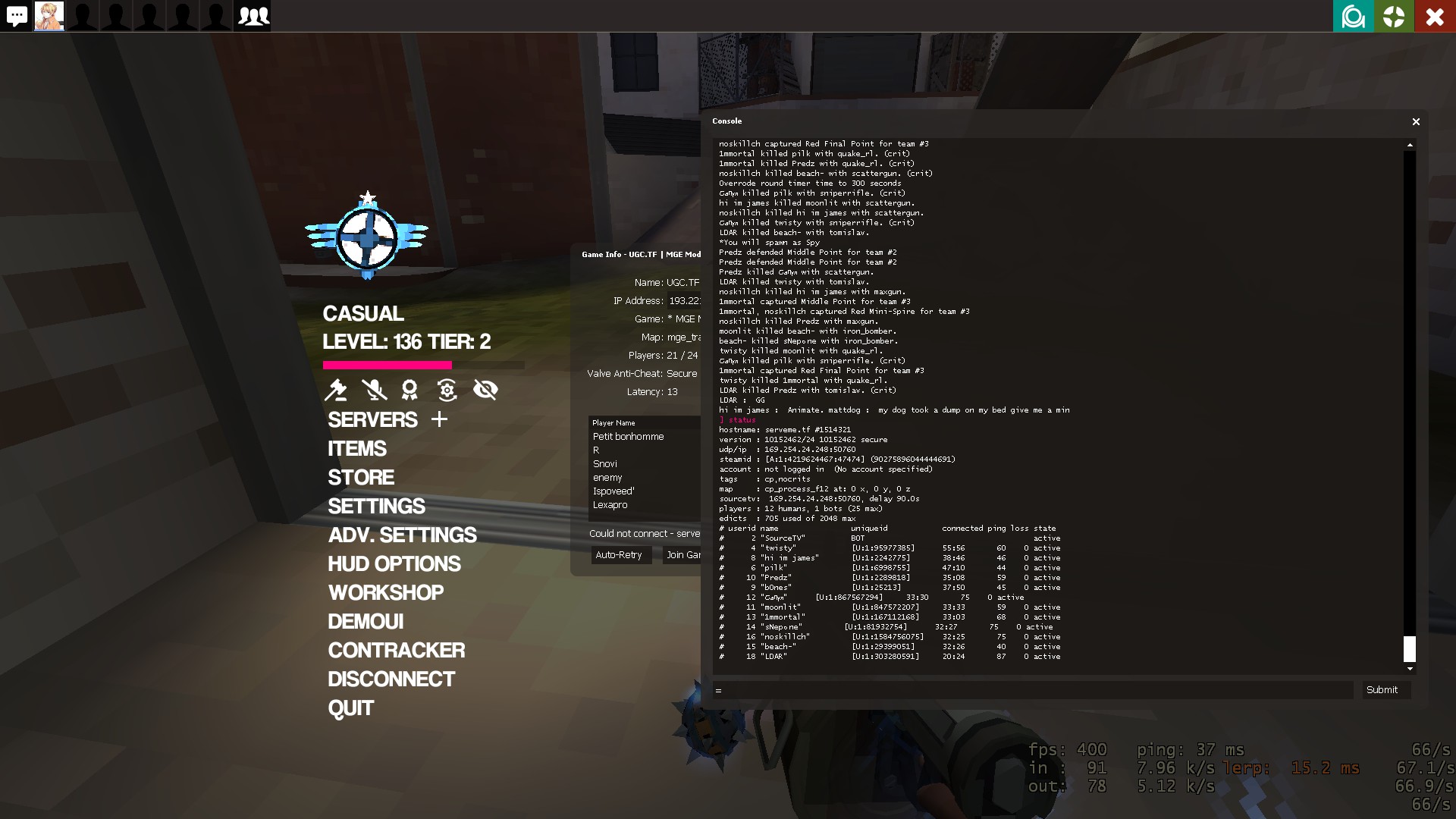 | bazuka | (5) noskillch, 1mmortal, hellharlequin, .tfrisk, spice kot |