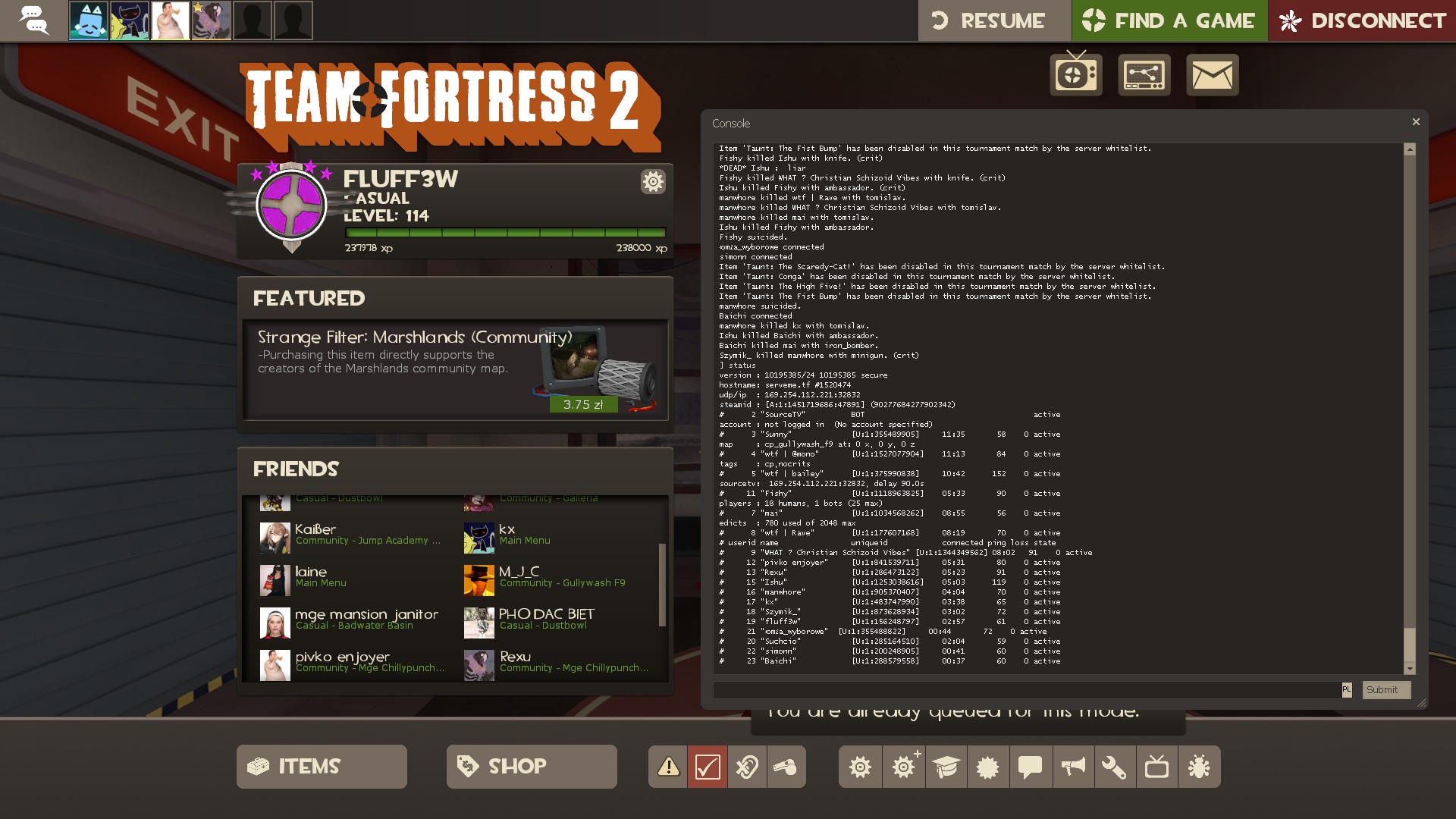 connect elzas.fakkelbrigade.eu:27040; password “tv”